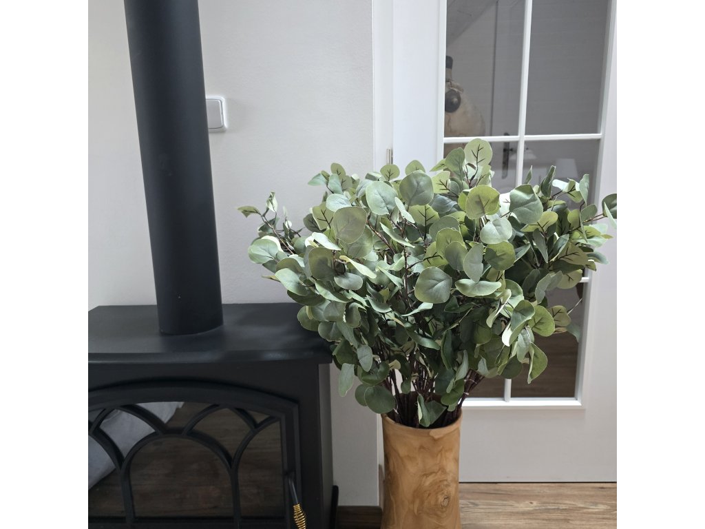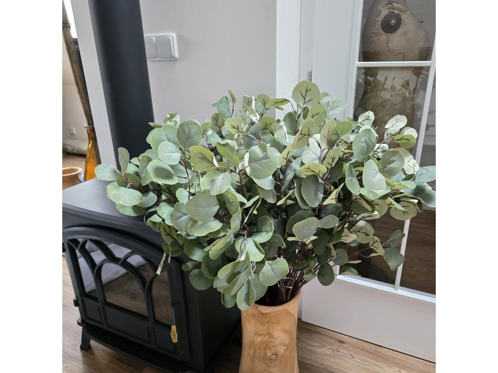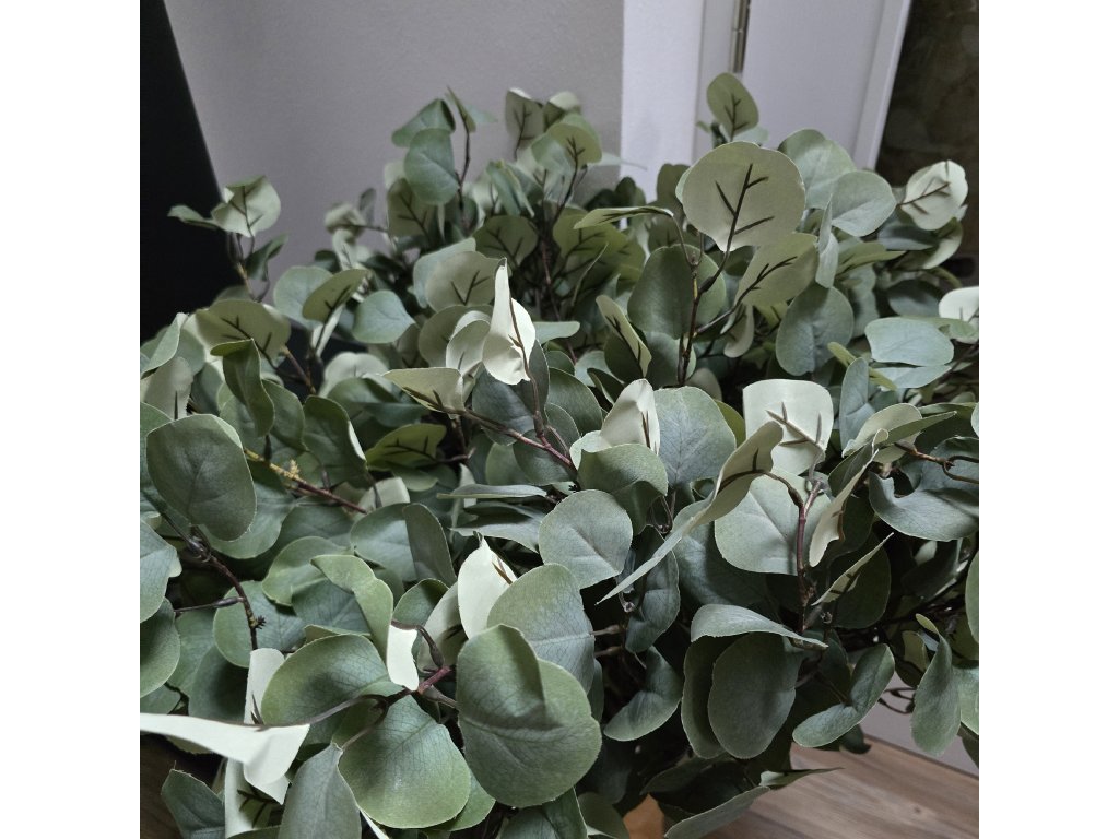 Krásná a věrohodná větev eucalyptu. Různě velké listy, přirozená barva kůry.