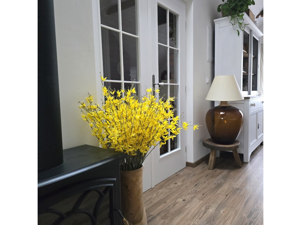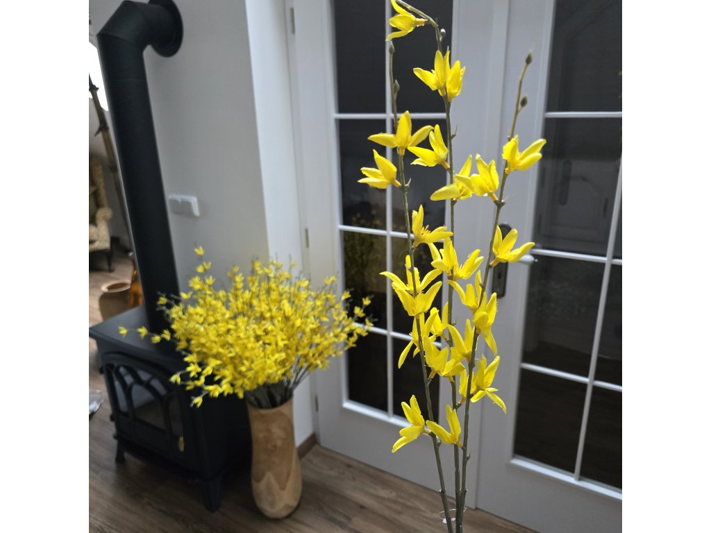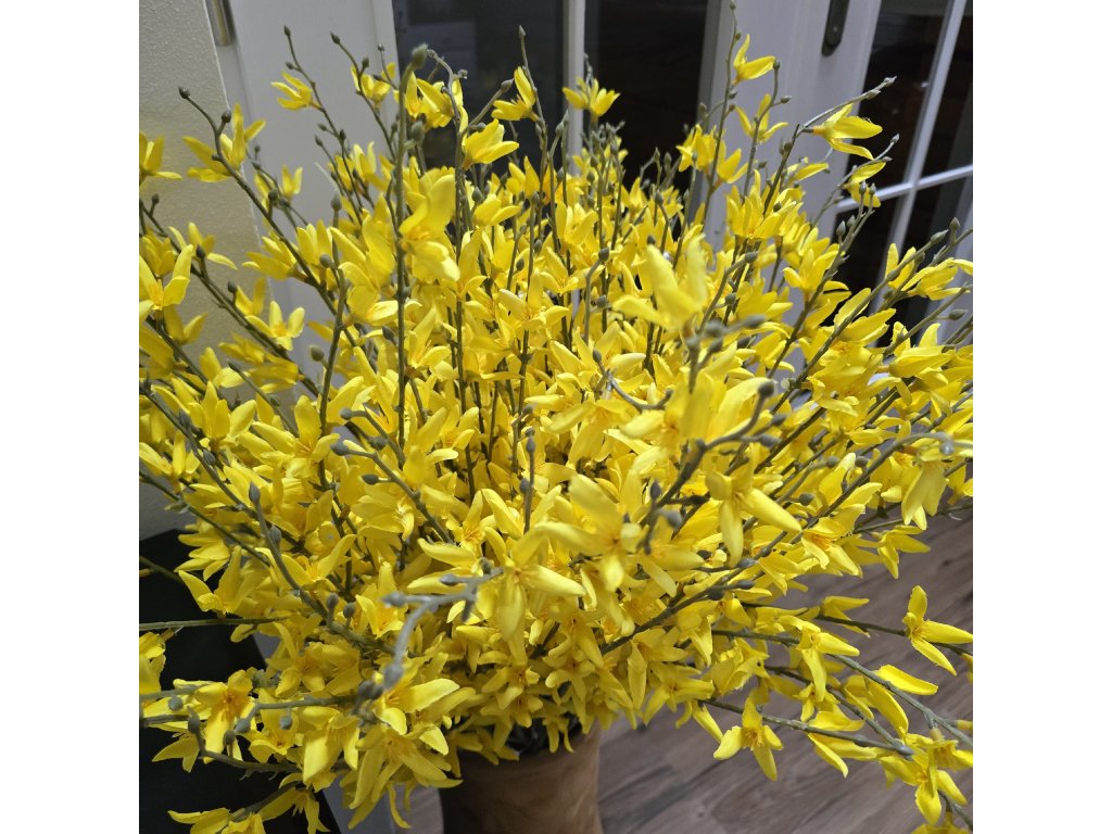 Krásná a věrohodná větev zlatého deště. Různé nakvetlé květy, přirozená barva kůry.